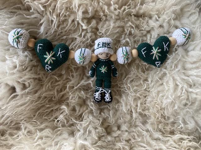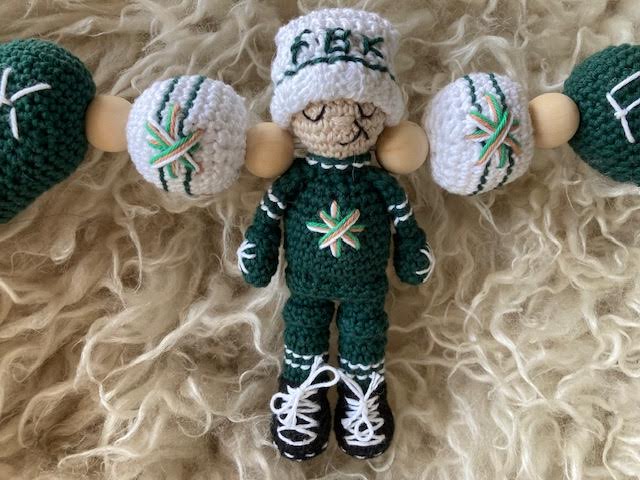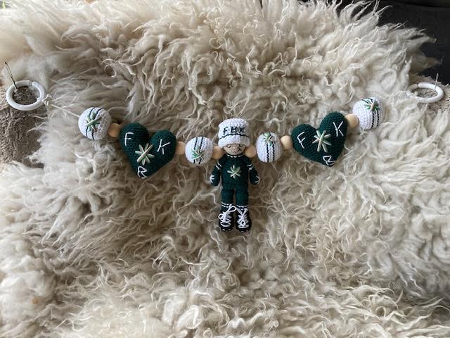 Med detta virkmönster skapar du ett Barnvagnshänge i Färjestad Hockeys färger!