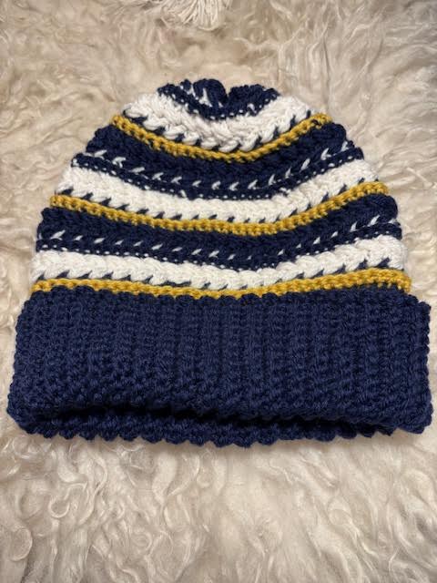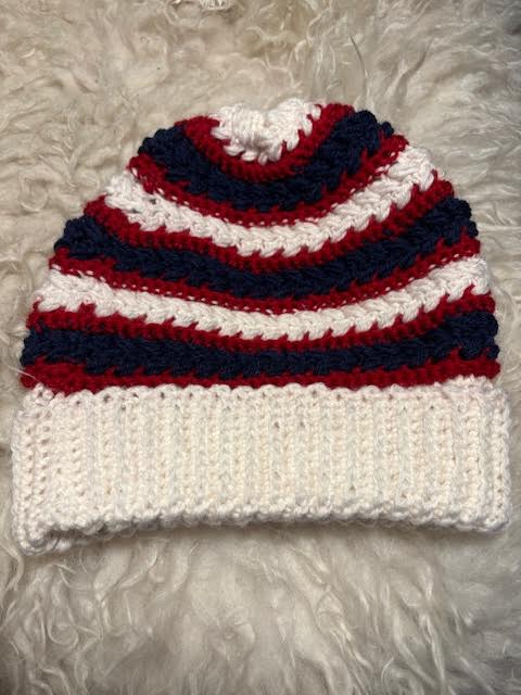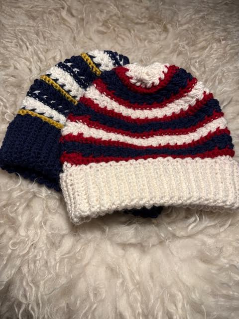 Med detta virkmönster skapar du en Lagmössa i Wheat Stitch i ditt lags färger!
